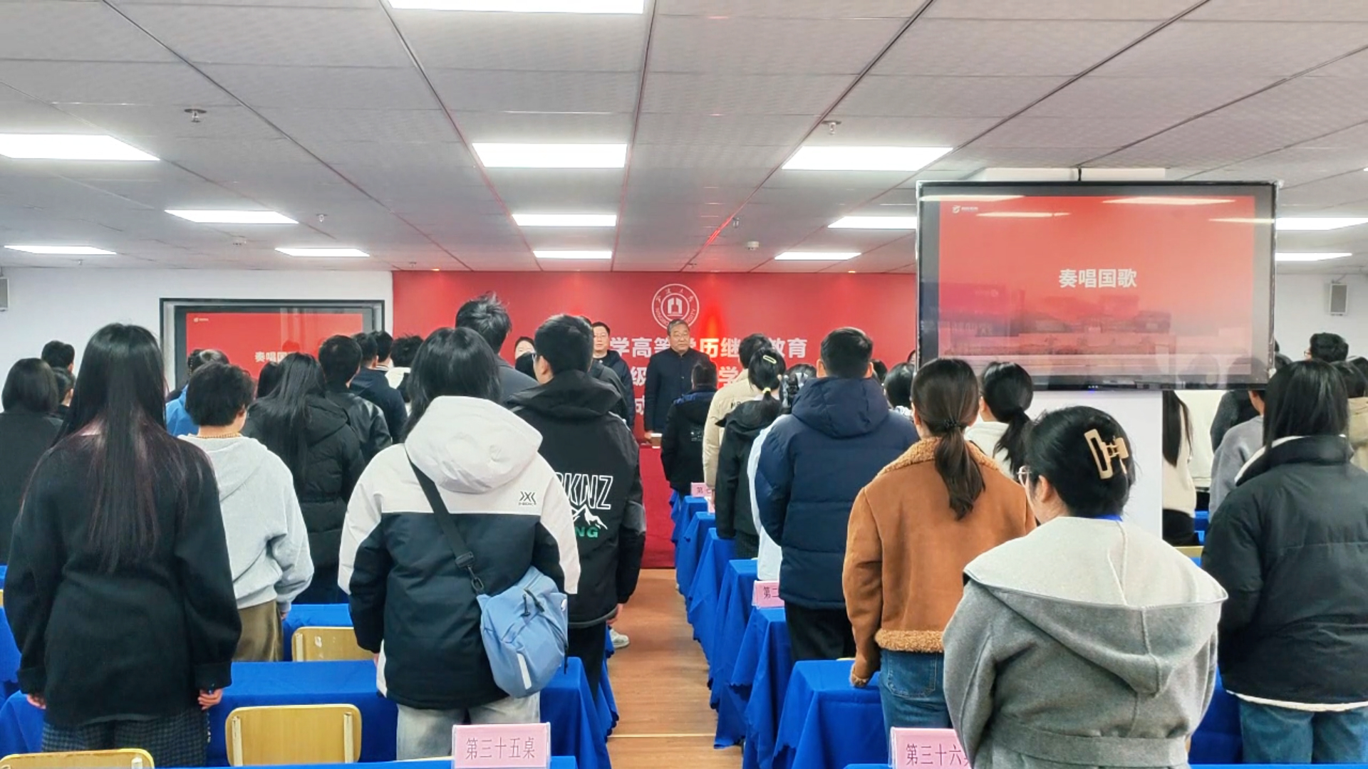 开学典礼在庄严的国歌声中拉开了帷幕。